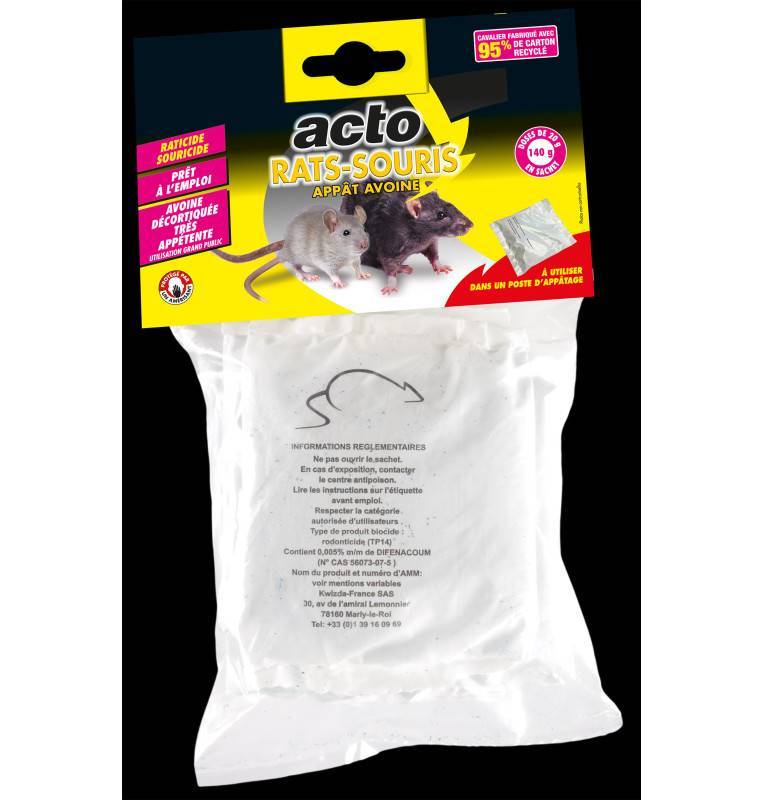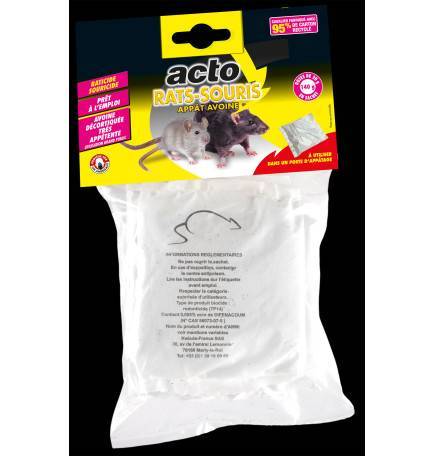 ACTO RAT-MOUSE OATMEAL BAIT ist ein hochwirksamer Köder, der entwickelt wurde, um Ratten und Mäuse gleichzeitig zu bekämpfen. Dieser Köder, der in Form von Dosispaketen präsentiert wird, besteht aus Hafergrütze (geschältem Hafer) und Brodifacoum, was den Köder für Nagetiere äußerst schmackhaft macht.