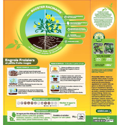 Dieser Dünger wird in Form von Mini-Granulat geliefert, das sich leicht verteilen lässt: Zum Pflanzen 50 g/m² in die Erde mischen, dann den Vorgang nach der ersten Ernte wiederholen. Es ist ideal für den Einsatz von März bis Mai und von September bis Oktober und eignet sich für verschiedene Kulturen: Johannisbeeren, Himbeeren, schwarze Johannisbeeren, Zitrusfrüchte und Rosen. Es ist im ökologischen Landbau einsetzbar und respektiert die Lebensdauer des Bodens und sorgt gleichzeitig für die Fruchtbildung und Vitalität Ihrer Pflanzen, ohne auf aggressive Methoden zurückzugreifen.