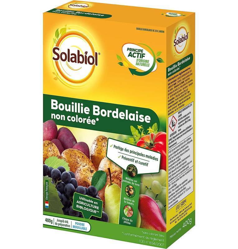Dieses multifunktionale Produkt wirkt wirksam gegen Falschen Mehltau, egal ob es sich um Weinreben, Kartoffeln oder Tomaten handelt. Neben dem Falschen Mehltau ist Porridge Bordelaise Solabiol auch gegen Pfirsichblattkräuseln und Apfelschorf wirksam, zwei Krankheiten, die unbehandelt in Ihrem Garten erheblichen Schaden anrichten können.
