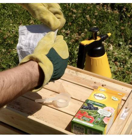 The Anti-Powdery mildew and White Solabiol is a truly versatile treatment that adapts to the majority of garden crops. Its water-soluble powder (SP) format makes it easy to dilute and apply.