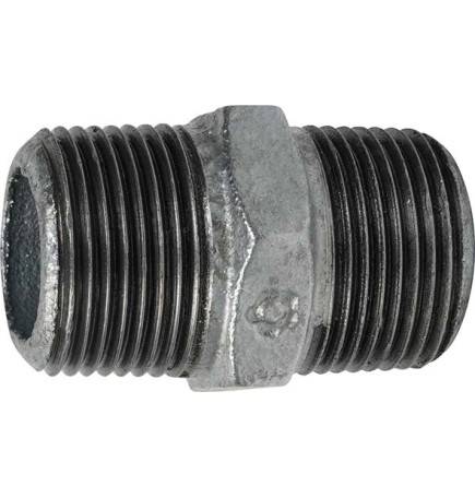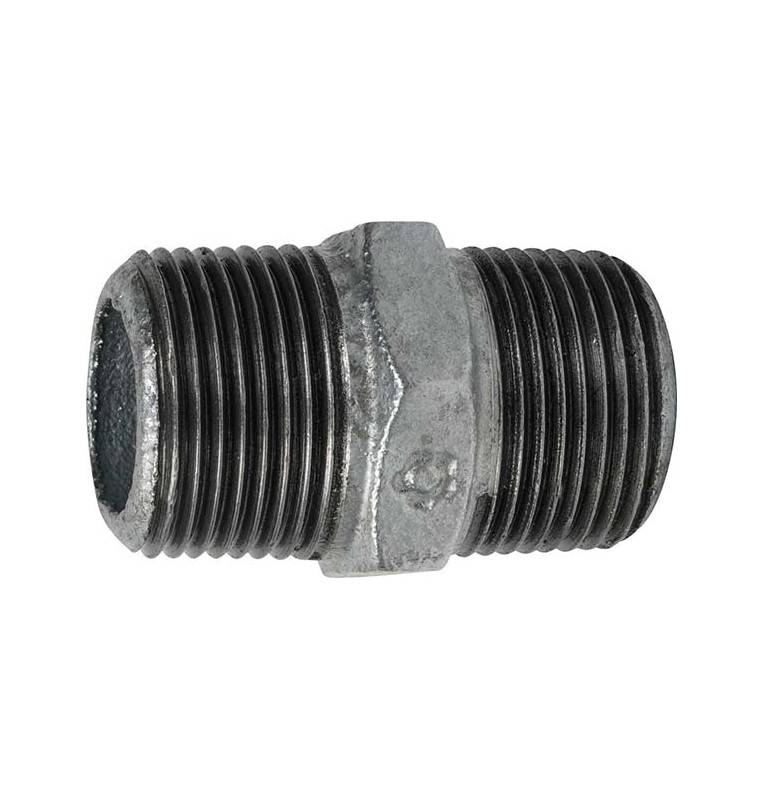 The Male-Male nipple made of galvanized malleable cast iron is an extremely durable junction fitting for fluid distribution. Made of EN-GJMB-350-10 and EN 10242 and ISO 49 certified, it is ideal for water, gas, steam and HVAC systems. The hot-dip galvanizing coating, with a minimum thickness of , provides superior corrosion resistance, essential for wet or outdoor environments. Its two tapered male threads (R), compliant with ISO 7-1 (BSPT), guarantee a high quality seal, verified by unit test. This nipple is the choice of professional reliability and is also prized for the creation of industrial furniture for its raw appearance and robustness, thus ensuring technical performance and vintage aesthetics.