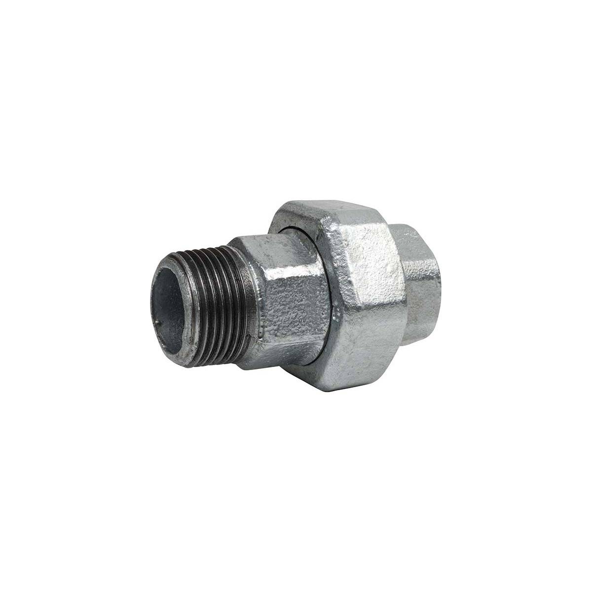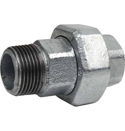 The Male-Female Conical Seat Union Fitting made of galvanized malleable cast iron is a strategic component for your piping systems. It is designed to provide a reliable and removable connection, while ensuring exceptional corrosion resistance thanks to its hot-dip galvanizing coating. This fitting is the ideal solution for creating easy access points for maintenance or replacement of parts. Its three-piece structure, with a central loose nut , provides superior sealing by compressing the internal tapered span (metal-to-metal).