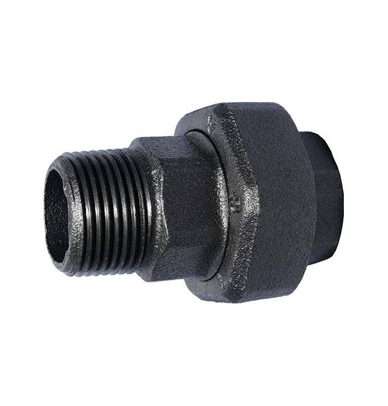 The malleable cast iron black core conical seat union fitting is an essential piping component that facilitates the assembly and, most importantly, disassembly of fluid systems. Unlike conventional unions, this Male-Female model allows a male threaded component to be joined to a female threaded component while offering the unique ability to break the junction quickly, without turning the pipes. Its three-piece design, with a central loose nut, creates an ultra-reliable metal-to-metal seal. Made of malleable cast iron, this fitting ensures superior strength and durability, which is essential for critical systems.