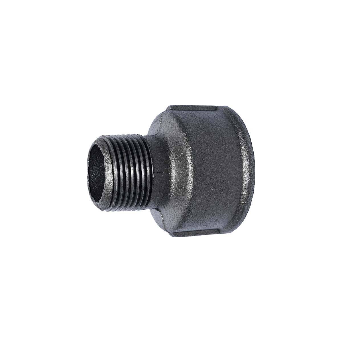 Este accesorio de reducción se adapta perfectamente a la distribución de varios fluidos, ya sea agua, gas, vapor o cualquier otro líquido y gas no corrosivo. Su capacidad para operar en estos diversos entornos lo convierte en imprescindible en las industrias de plomería e ingeniería de fluidos. También es una parte clave de los sistemas HVAC (calefacción, ventilación y aire acondicionado), donde la coincidencia precisa del diámetro es crucial para un flujo adecuado y mantener la eficiencia energética. Además, el acabado negro y el lado crudo del hierro fundido maleable lo destinan naturalmente a la creación de muebles industriales (estantes, lámparas, mesas), donde se convierte en un elemento de diseño vintage y sólido, aportando una estética loft muy buscada.