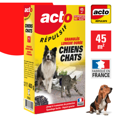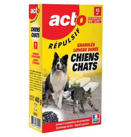 El repelente granular ACTO es la solución ideal para acabar con las molestias causadas por perros y gatos en tus espacios exteriores. Gracias a su ingrediente activo, el geraniol, crea una barrera olfativa que les impide ensuciar sus caminos, terrazas, parques infantiles y alrededores de la casa.