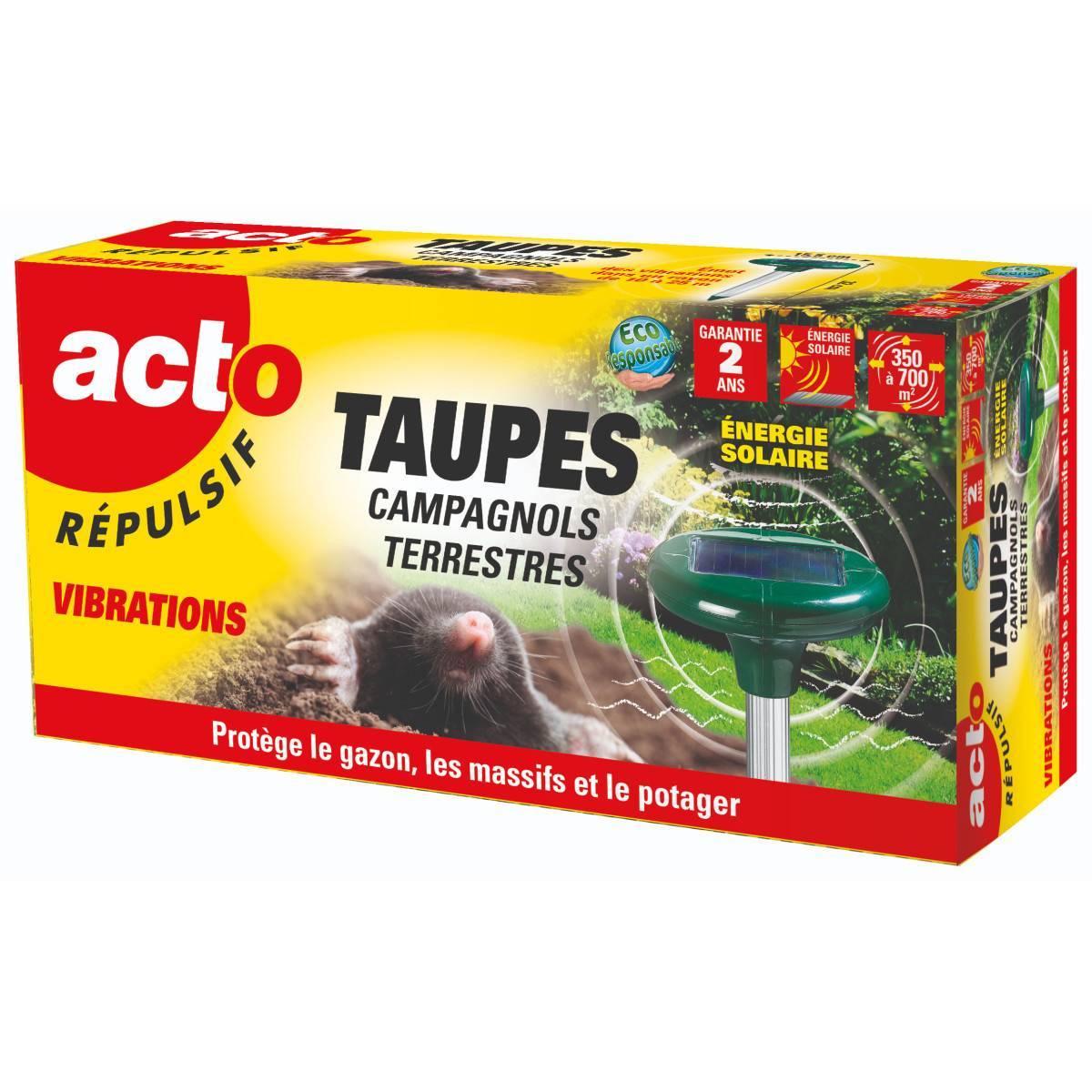 Il dispositivo emette onde sonore che provocano vibrazioni nel terreno. Questi disturbi danneggiano il sistema nervoso di talpe e arvicole, impedendo loro di nutrirsi normalmente. Costretti da questo fastidio, cambiano galleria in pochi giorni. A una velocità compresa tra 35 e 40 secondi, il repellente RETRO emette un segnale di 3 secondi, ovvero 2.500 volte al giorno, coprendo un'area fino a 350 m².