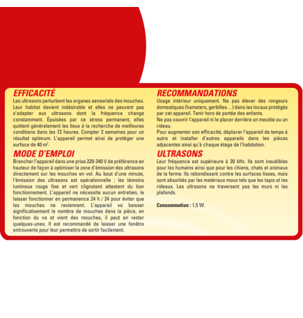 Addio mosche e moscerini grazie alla tecnologia ad ultrasuoni! Il RETRO REPELLENTE ULTRASONIC MOSCHE - MOSCERINI è il tuo alleato inarrestabile per proteggere il tuo spazio vitale. Progettato per garantire una protezione ottimale fino a 40 m², questo dispositivo è la scelta perfetta per le vostre case, appartamenti e altri spazi interni.
