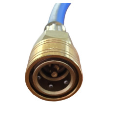 Questo tubo è dotato di un collettore compatto e di facile lettura con un campo di misura da 0 a 200 psi. Questo indicatore di pressione è fondamentale per garantire un carico di refrigerazione conforme alle norme dell'art. Il vantaggio principale di questo manometro è la sua facilità di lettura, che consente di monitorare la pressione in tempo reale. È fondamentale rispettare la pressione massima consigliata per i refrigeranti Duracool, Climapure o Multicool, che non deve superare i 45 psi. Il manometro è posizionato direttamente all'estremità del tubo, il che rende la movimentazione particolarmente semplice.