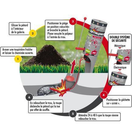 Queste ricariche sono calibrate con cura per garantire una potenza sufficiente per uccidere tutti i tipi di talpe e topi talpa. Il loro sistema di innesco è esclusivo e garantisce un'attività costante, evitando così la perdita di efficienza. Ogni petardo è progettato per fornire un'esplosione calibrata che garantisce un'azione rapida senza compromettere la sicurezza.